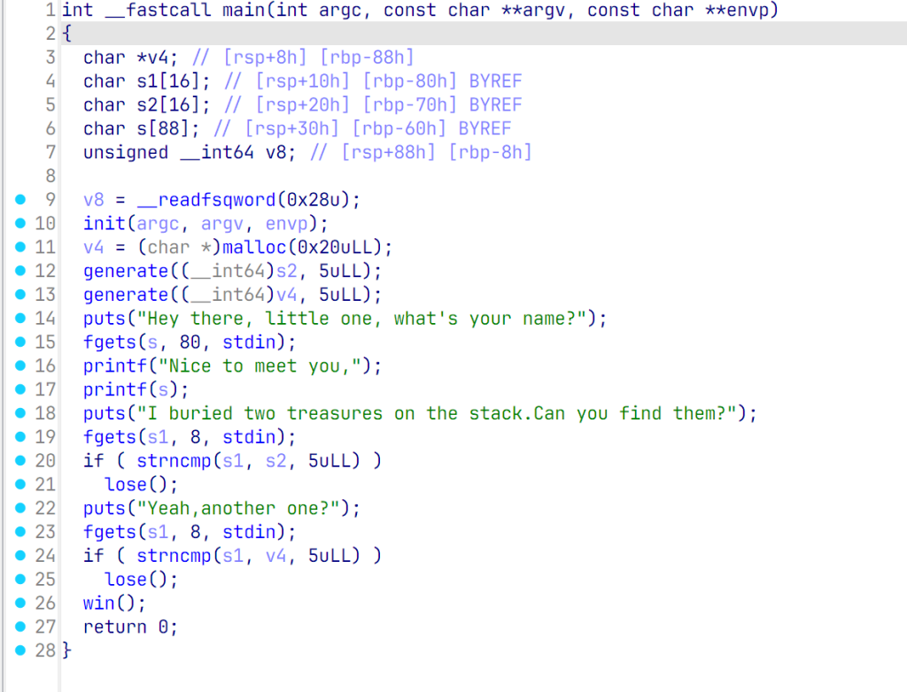 - 寄存器地址泄露完全后,继续泄露会从栈顶(rsp)开始读取栈